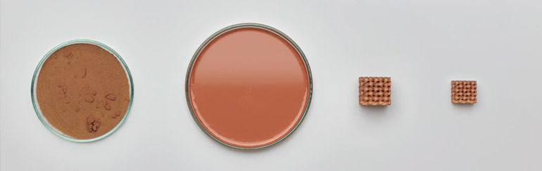 La gamme des résines Métal Amatec disponibles : Acier inoxydable 316L et 17-4PH, Inconel 625 et Cuivre.