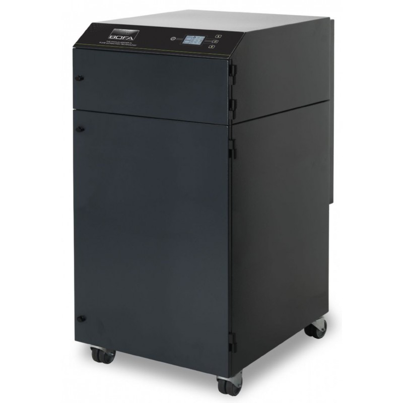 Le système d'extraction laser haut de gamme AD 1000 iQ de BOFA combine une capacité de filtration extrêmement importante avec des débits et pressions d'air élevés, ce qui en fait le choix idéal pour les applications lourdes générant de grandes quantités de composés organiques gazeux et particulaires.