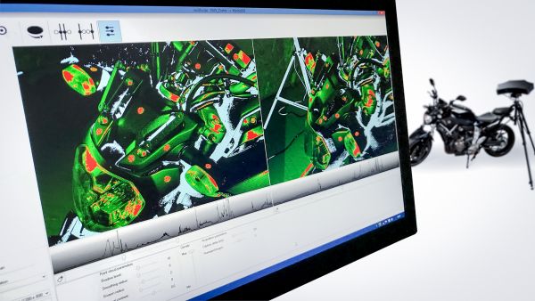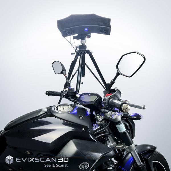 La dernière version du logiciel eviXscan 3D Suite 2.0 permet de numériser des objets de couleur sombre sans avoir besoin de mettre de la poudre matifiante, ce qui facilite grandement le travail, en particulier avec les nouvelles motos.