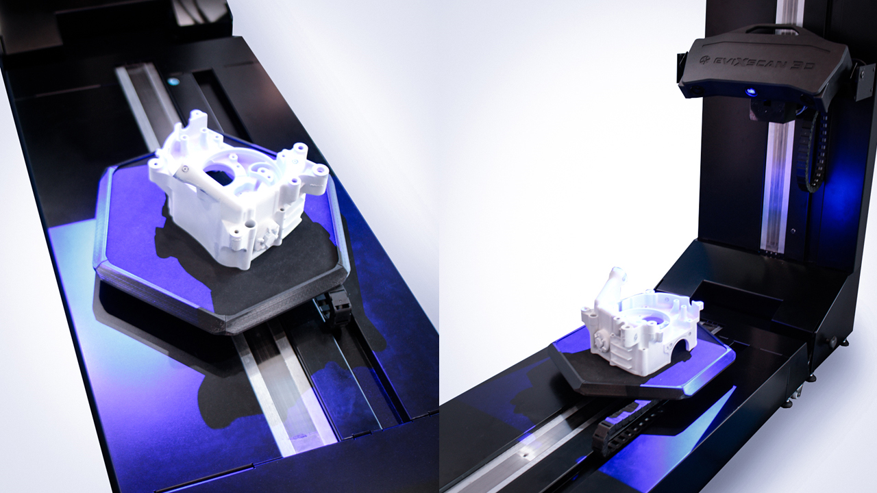 eviXmatic est une station d'accueil pour le scanner optique 3D Heavy Duty Optima, qui effectue des mesures de pièces sans contact à plein champ avec une grande précision.