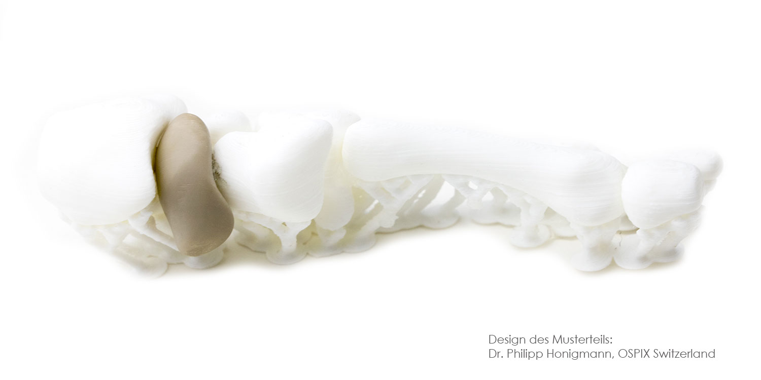 APIUM offre la possibilité unique de produire des prothèses et des implants spécifiques au patient à des coûts bas et aux délais d’implantation minimaux, sans affecter les propriétés de biocompatibilité et de stérilisation du PEEK. Par conséquent, la pièce répond aux exigences élevées pour les applications in vivo chez l'homme.