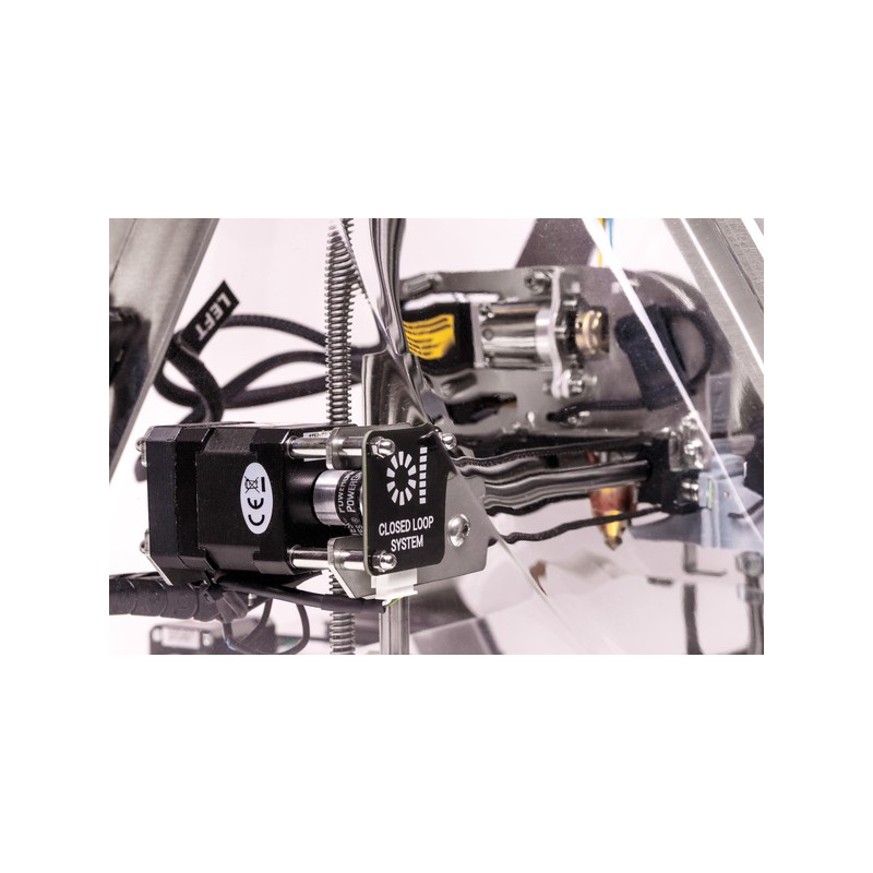 Communication: USB et LAN (accès au WiFi après connexion au routeur WiFi). Impression autonome prise en charge via le panneau + carte SD interne Electrionics Sunbeam 3.0 avec processeur ARM LPC1769, équipé de 5 moteurs pas à pas: 3 pour l'axe XYZ, 2 autres pour l'extrudeuse double. Lecteur de disque interne accessible via USB