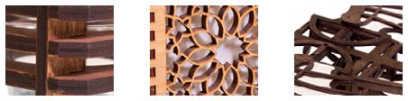 | Bois Facile à obtenir, le bois démontre parfaitement la beauté simple et la polyvalence de ce qu'un découpeur laser peut faire. |