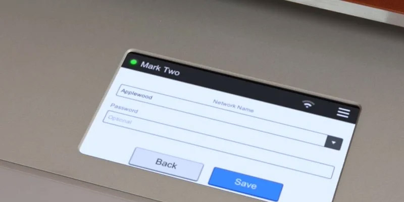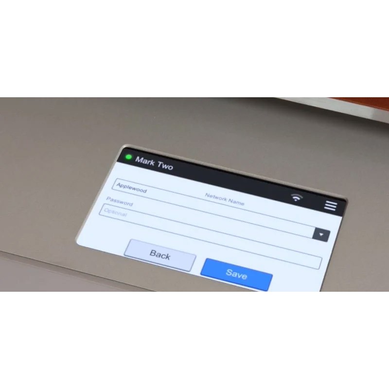L'écran tactile de la Mark Two est intégré au châssis en aluminium de l'imprimante. Il permet gérer les différents paramétrages de l'imprimante comme la gestion des files d'attente, le lancement les impressions ou la connexion Wifi.