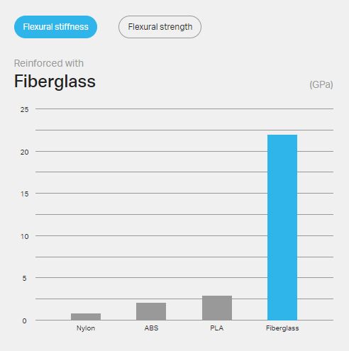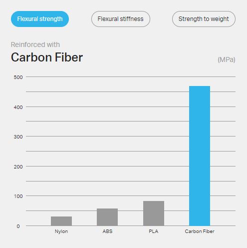 En terme de résistance à la traction, Mark Two vous permet d'obtenir des pièces 22.6 fois plus résistantes (700MPa) et un module d'élasticité 24.8 fois plus important qu'avec du filament ABS.
