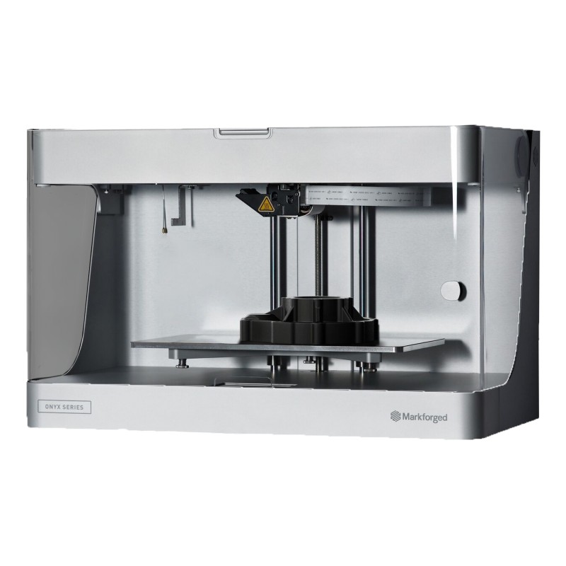 L'imprimante 3D Onyx Pro a été développée par Markforged pour l'impression d'objets à haute rigidité (Onyx + Fibre de verre). Cette imprimante de bureau dispose de deux têtes d'impression, pour pouvoir allier filaments Onyx et Fibre de verre, et imprimer des pièces renforcées.