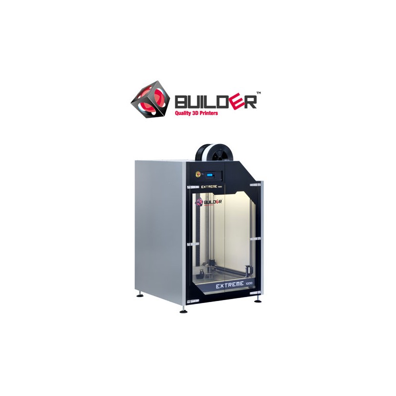 L'Extreme 1000 est l'une des plus grandes imprimantes FDM 3D disponibles. Avec un volume de construction de 700x700x820 mm, il vous permet d'imprimer des prototypes / objets extrêmement volumineux. Le Builder Extreme est entièrement assemblé avec un lit chauffant intégré et une extrudeuse Dual-Feed unique à Builder.