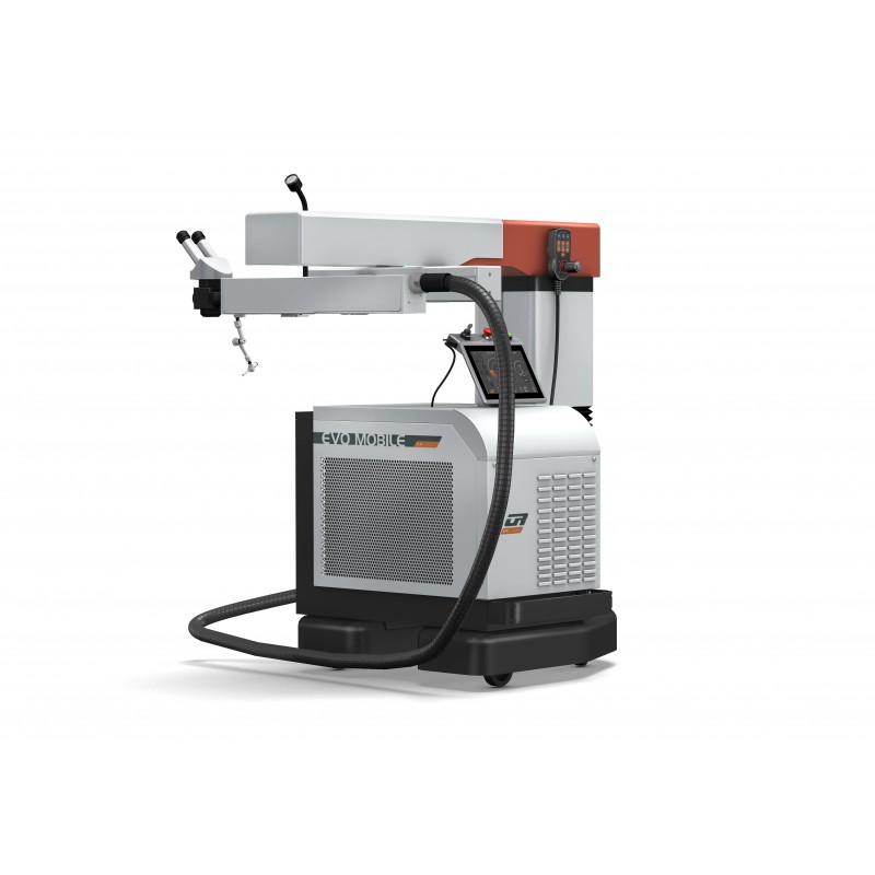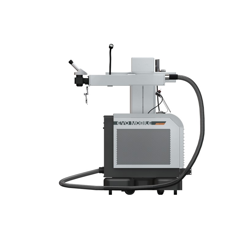Le système EVO MOBILE est extrêmement facile d‘utilisation et peut être manipulé dans une position fixe avec les freins de stabilisation. Le déplacement des axes permet de très longues courses et est aussi contrôlé par un levier de commande. La position de soudure est ainsi réglée avec une précision absolue de 0,1 mm. Avec les extensions optiques et les capacités optiques de pivot à 360°, aucun angle ne reste mort.